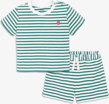 A ready-to-go top and shorts combo that makes getting baby dressed simple (and keeps them comfortable once they are). Tee has shoulder snaps for easy on-and-off over the baby’s head and shorts have a decorative drawstring. Made from 100% cotton jersey that is incredibly soft and breathable. Pre-washed to minimize shrinkage.