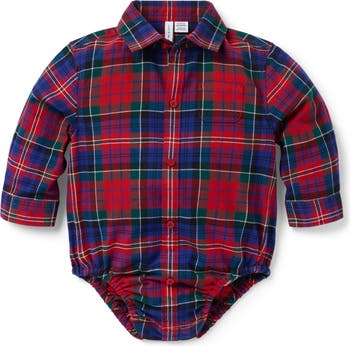 Janie and Jack Baby Tartan Flannel Bodysuit, Main, color, Red