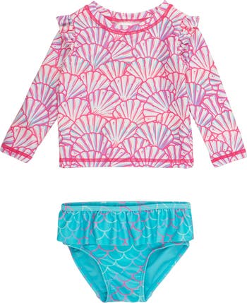 Baby/Toddler Girls UPF50+ Sun Protected Skirted Flutter Long Sleeve Rash Guard Bikini