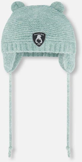 Keep baby safe and warm in the cold with our Knit Hat with Ears Green. Super soft with a cozy lining, this knit hat features earflaps for added coverage, side strings, and animal ears for added charm. A logo patch on the front adds signature style!
