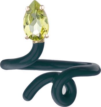 An enamel vine wraps around your finger in this organic-inspired ring topped by a gleaming peridot.