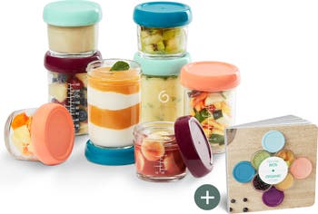 Includes: Four four-ounce jars, four eight-ounce jars, lids and baby food recipe book.