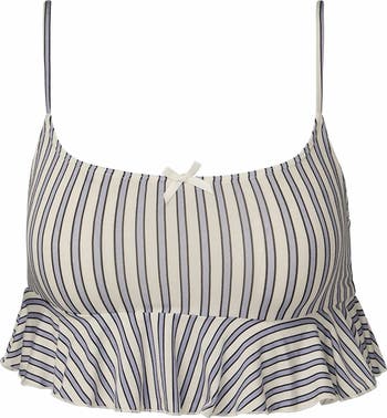 Made from modal jersey, this cropped scoopneck tank is fitted through the bust with a ruffled babydoll hem. It’s detailed with a tiny center bow and adjustable straps. Cropped scoopneck tank Fitted through bust with ruffled babydoll hem Tiny center bow detail Adjustable straps 92% Modal 8% Spandex Machine wash with like colors. Do not bleach. Tumble dry low. Iron cool. Do not dry clean.