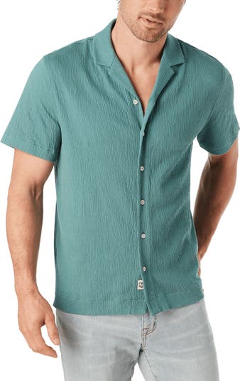 Fine crinkles enhance the cooling airflow you'll enjoy every time you build your sunny-weekend look with this lightweight organic-cotton blend camp shirt.