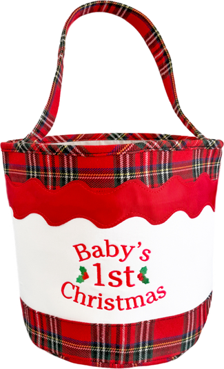 Make your mini’s first Christmas one filled with memories as magical as the holiday itself! Accented with scalloped grosgrain ribbon and crafted of festive flannel and durable canvas, this tote holds tons of tiny treasures your little one can love.