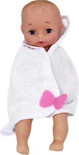 Baby’s First Bathtime Baby Softina White Blanket - Baby Softina is a wonderful companion that makes bath time fun and less stressful for mothers. Baby Softina’s one piece body prevents water from seeping into the dolls body. Baby Softina comes dressed in a diaper and wrapped white baby bath blanket. Baby Softina comes with a classic baby doll face sculpt.