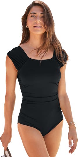 This swimsuit combines sculpting power with thoughtful design, featuring a high-neck, wider straps, body shirring and a smoothing back wrap that flatters every curve. Sewn-in cups and Power-mesh panels at the front and back provide lasting support and contouring. Layer this swimsuit under a flowy maxi skirt or capri pants with statement earrings for a beach-to-dinner look that celebrates your curves and confidence.