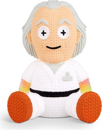 Approximately 5 inches tall and perfect for display or play Our friendly robots designed this figure to look like knit fabric at a glance, but it’s actually made of vinyl Signature vinyl tag on the figure, complete with barcode decal to resemble a sewn-in tag Doc Brown with shimmering hands never looked so unique!