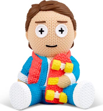 Approximately 5 inches tall and perfect for display or play Our friendly robots designed this figure to look like knit fabric at a glance, but it’s actually made of vinyl Signature vinyl tag on the figure, complete with barcode decal to resemble a sewn-in tag Blacklight Marty McFly with skateboard never looked so unique!