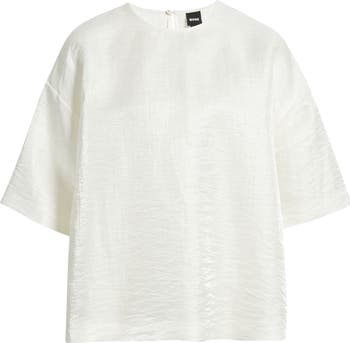 A metallic treatment lights up the easy drape of this relaxed linen-blend top that's easy to style up or down.
