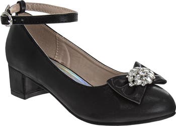 Channel her inner fashionista with these charming Little Kids' dress pumps! Perfect for special occasions or adding a touch of elegance to everyday outfits, these shoes boast a sophisticated low heel that's comfortable for your little princess. The adjustable buckle closure ensures a secure fit, while the adorable bow and sparkling rhinestones on the front add a touch of whimsical flair.