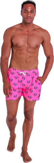 What says Retro Swimwear more than neon pink Swim Shorts? Nothing!! Let us introduce our Baewatch fluro pink swimming shorts with a little bit of je ne sais quoi guaranteed to Brighten Up Every arena you enter! Our swim shorts are short/medium in length, featuring some delicious prints that will turn heads at Beach clubs, yacht holidays, hot tub parties or just down your local pool. Made from 100% Recycled Polyester from plastic bottles recovered from the sea & comes with a matching shirt to complete the look!! We also have matching women's swimwear for those matchy matchy poolside moments! Features: