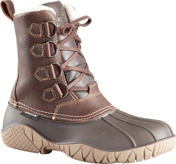 This waterproof snow boot will keep you comfortable and protected, whether you're enjoying a backyard snow fight or heading off for a weekend in the mountains. The combination of a stylish leather upper, wool-blend lining and a multilayered inner boot system work together to maintain a warm interior while keeping out the cold weather.
