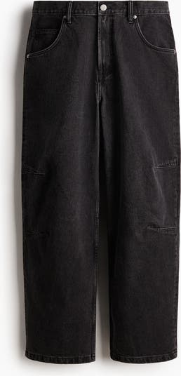 Baggy 5-pocket jeans in rigid cotton denim. Rounded leg and a baggy fit from the seat to the hem with plenty of room around the whole leg and darts at the knee for added volume. Dropped crotch and stacked at the ankle. Regular waist and a zip fly.