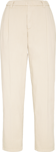 The stretch cotton denim is garment-dyed in the season’s delicate colors. A small percentage of spandex helps to make the fabric comfortable to wear.