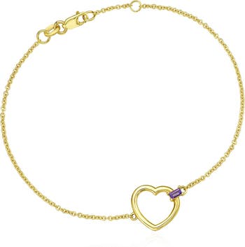 Elevate your style with our Baguette Amethyst Open Heart Bracelet – a dainty yet dazzling accessory. Also February's birthstone!