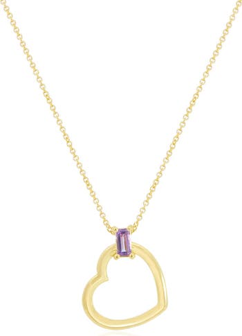 Elevate your style with our Baguette Amethyst Open Heart Necklace – a dainty yet dazzling accessory. Also February's birthstone!