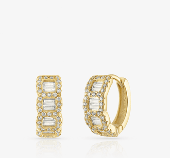 Perfect for day-to-night wear, these huggie hoops are shaped to comfortably hug your lobes and are encrusted with dazzling pavé and baguette-shaped cubic zirconias.