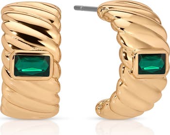 Faceted baguette crystals sparkle on these textured hoop earrings that are ready to elevate any look.