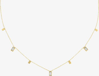 A delicate, waterproof necklace adorned with dainty baguette-shaped charms that catch the light with every movement. Ideal for layering or adding a soft, subtle shimmer to your everyday look.