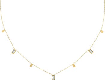 A delicate, waterproof necklace adorned with dainty baguette-shaped charms that catch the light with every movement. Ideal for layering or adding a soft, subtle shimmer to your everyday look.