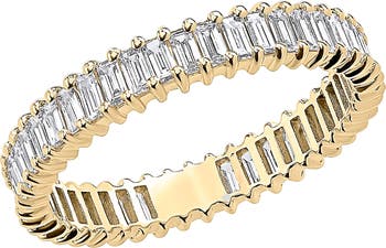 Baguette-cut diamonds give endless shine to this eternity ring forged from gleaming 14-karat gold.