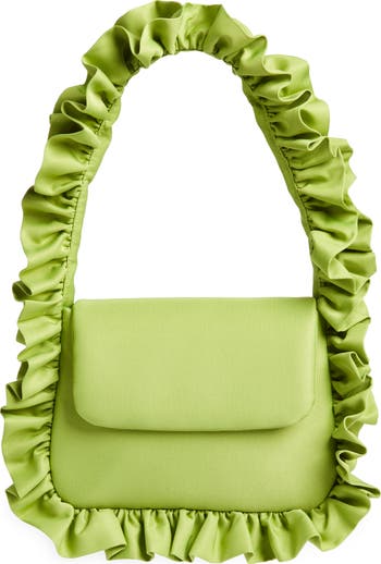 Cute and compact, this softly structured, pillowy denim shoulder bag serves '90s nostalgia in the sweetest way possible, thanks to Baggy London's signature ruffled strap.