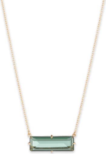 A translucent green epoxy baguette pendant brings refreshing sparkle and color to this delicate chain necklace.