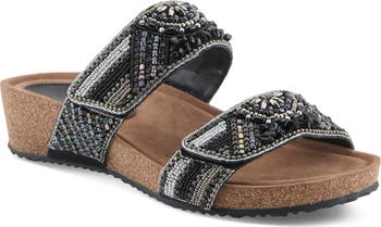 Hand-beaded detailing sparkles with every step you take in this boho sandal made with an adjustable hook-and-loop closure, an ultracomfortable suede lining and a cork bottom that's easy on your feet.