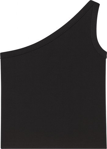 This one shoulder top adds a twist to the classic tank. Made from supima cotton, this heavier ribbed material is both comfortable and elegant. A must have elevated basic for any season.