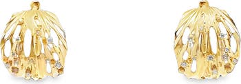 Sparkling prong-set diamonds glisten like raindrops atop the gleaming 18-karat-gold leaf forms of these clip-on earrings from the brand's tropical-flora-themed Bahia collection.