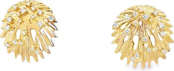 Sparkling prong-set diamonds glisten like raindrops atop the gleaming leaf forms of these 18-karat-gold earrings from the brand's tropical-flora-themed Bahia collection.