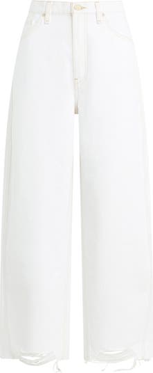 Our Bailey Relaxed Barrel Jean in White is an on-trend fashion-forward fit that features a rounded outseam to accentuate its barrel look| This relaxed jean has a 30" inseam with a raw hem and it is made of clean white rigid denim|