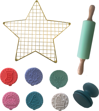 - Ages 3+ Set Includes: 6 Silicone Stampers, 1 Silicone Rolling Pin, and 1 Gold Cooling Rack