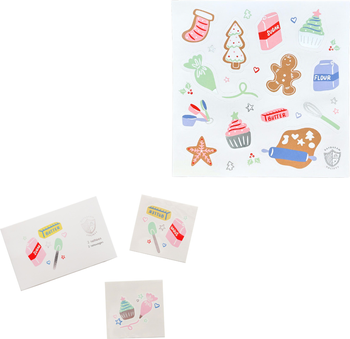 Add extra holiday cheer with the Baking Spirits Bright Christmas Stocking Stuffer Set! This festive set includes 2 vibrant temporary tattoos and 4 sticker sheets featuring baking- and holiday-inspired designs perfect for kids, teens, or anyone who loves holiday-themed accessories. The tattoos are easy to apply with water, and the sticker sheets peel and stick in seconds, making them a fun and effortless way to celebrate the season. Compact and delightful, this set is ideal for stocking stuffers, party favors, gift bags, or last-minute Christmas gifts, and all items are safe, non-toxic, and long-lasting. Bring the joy of baking and holiday magic to your celebrations with this fun, festive, and easy-to-use sticker set.