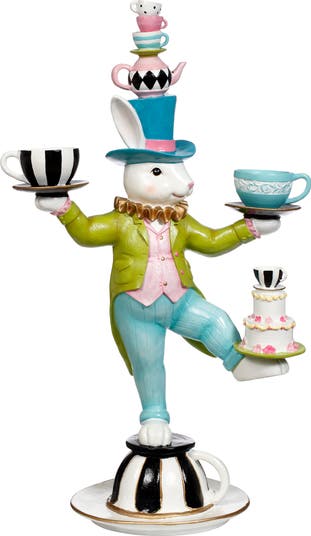 The Mark Roberts Balancing Act Rabbit (24") is a whimsical showstopper perched gracefully on a cup and saucer. With cups in hand, a teapot balanced on its head, and a cake poised on its foot, this piece captures playful elegance and remarkable detail. Perfect for collectors or statement displays, it brings charm, balance, and storytelling to any décor.