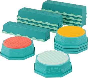 3 years & up. Bring balance to your classroom or home with these Balancing Beams and Stepping Stones. Keep your balance and step from stone to stone. This colorful balance beam set is a versatile toy that lets kids get creative as they stay active. It features 8 beam sections and 5 sensory step-stones to connect and build a balancing course with! Children can create endless combinations thanks to simple, versatile design – just line up the happy faces on the beams and press down. Balancing is always tons of fun, but wait until you get to the step-stones! They're sensory, with bumpy designs that'll add a lil' tactile fun to playtime. Build one long beam, a zig-zag course, or anything else you can dream up – it's a snap! The set comes with beams and modules that you can assemble in a multitude of ways to accommodate both your students and your space. Walking on these balance beams will strengthen children's gross motor skills and improve their coordination.