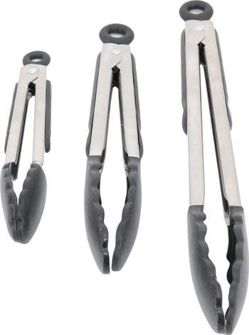 This Oster Baldwyn 3 Piece Stainless Steel Kitchen Tongs Set is an essential in the kitchen. The durable stainless steel material makes these super sturdy and a breeze to clean up. The silicone ergonomic grip makes this comfortable to hold while you're cooking or grilling. A locking ring makes these easy to store away when not in use by locking them closed to fit in drawers or hang on hooks. A good pair of tongs is the perfect gift for any chef!