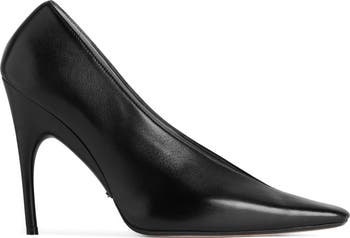 This classic pointy-toe pump is crafted in Italy with a U-shaped topline and sky-high stiletto heel for maximum impact.