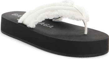 Padded straps top this modern flip-flop set on a thick platform sole textured with wavy tread.