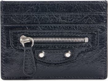 Crackled lambskin leather and stud hardware from the label's iconic Le City collection detail a slender card holder equipped with plenty of slots.