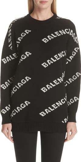Balenciaga takes on the logomania trend with this jacquard sweater knit with the label's signature branding in bold type.