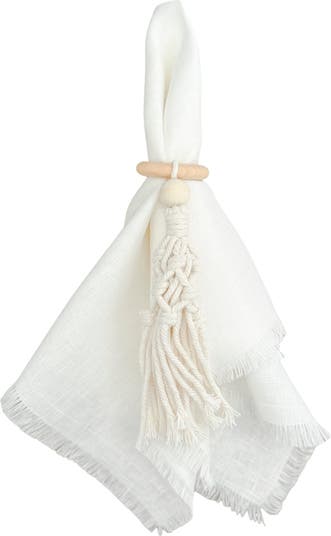 The Bali Crochet Wood Napkin Rings are a versatile choice, pairing perfectly with our stylish napkins to enhance any modern tabletop setting. Set of 4. 100% Cotton Rope, Wood Ring and Bead. Imported.