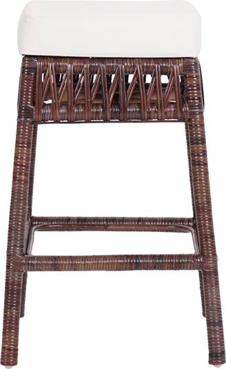 Bali Rattan Backless Counter Stool, White Cushion with Woven Frame