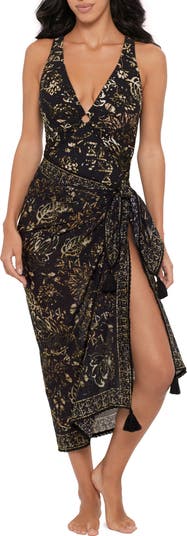 A gorgeous print amplifies the breezy vibe of a resort-ready pareo that may be tied as a sultry skirt or cover-up dress.