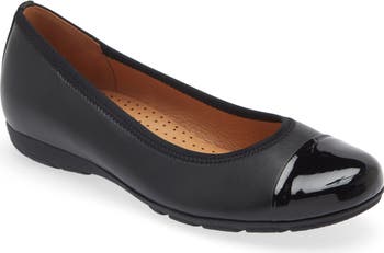 A glossy cap toe adds a sleek flourish to this leather ballet flat grounded on a sporty, lightweight sole.