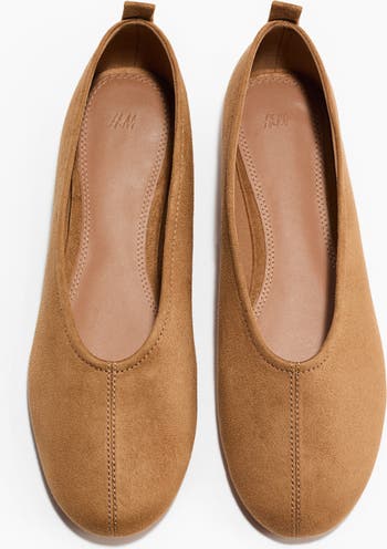 Ballet pumps with a soft, napped finish featuring rounded toes, a visible seam at the front and a loop at the back. Jersey linings.