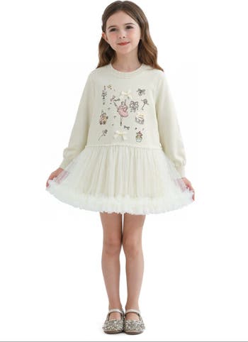The Ballet Ruffle Bow Dress brings graceful elegance to everyday moments with its soft, muted tone and delicate details. Ruffle accents and a charming bow add a ballet-inspired touch to the flowing silhouette.