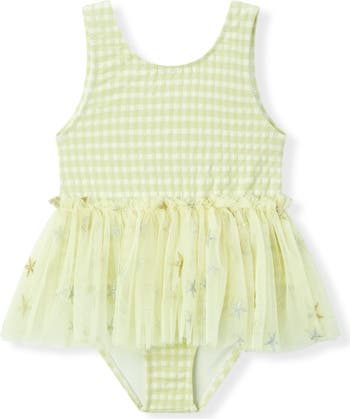 Your little ballerina will love twirling in our Ballet Skirt Swimsuit. Made from a fade-resistant blend of 87% nylon, 13% spandex, and sun protection of UPF 5+, this practical and adorable swimsuit is perfect for pool parties and beach play. Sun Protection: We are committed to keeping your little ones safe from the sun. UPF 5 is a sun protection rating that indicates that a fabric blocks 98% of ultraviolet (UV) rays, allowing only 2% of UV rays to pass through.