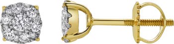 These gorgeous 0.17 carat diamond earrings feature a elegant cluster design meticulously set in 10K gold with a screwback setting. Their elegant arrangement highlights the timeless brilliance of the diamonds.